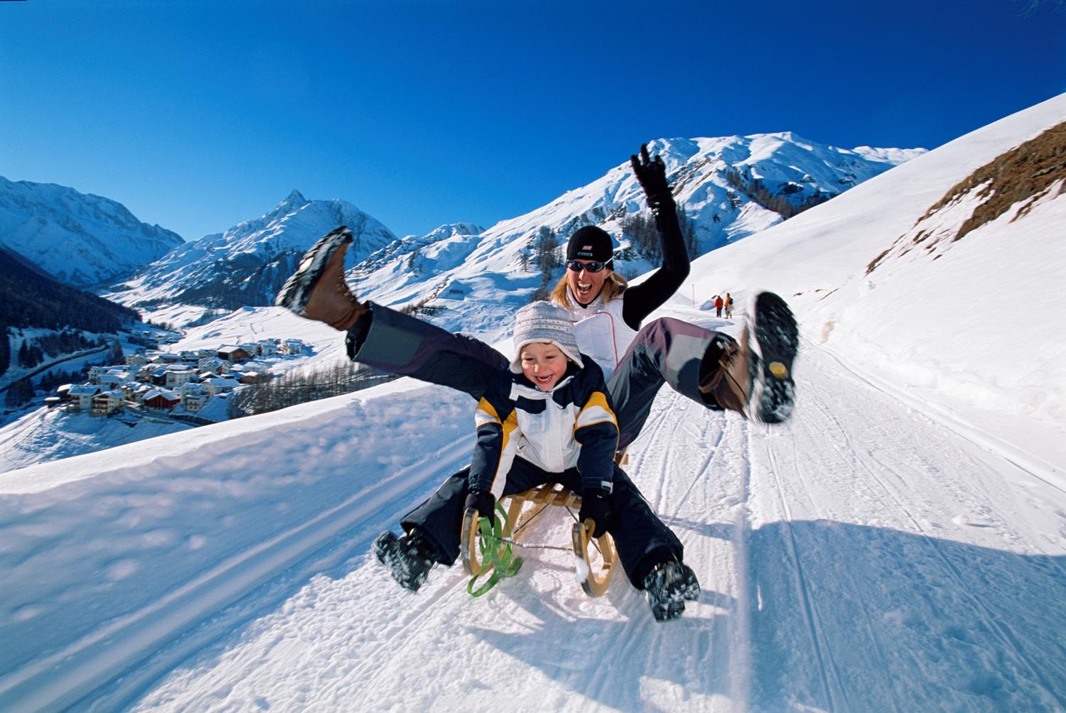 Von Samnaun Dorf laufen die Schlittler rund eine Stunde zum Ausgangspunkt Motta Saltuorn. Von dort rodeln sie im rassigen Tempo zurück ins Dorf. Nebst dem Fahrspass bietet die Naturschlittelbahn wunderbare Ausblicke auf das Samnauntal.