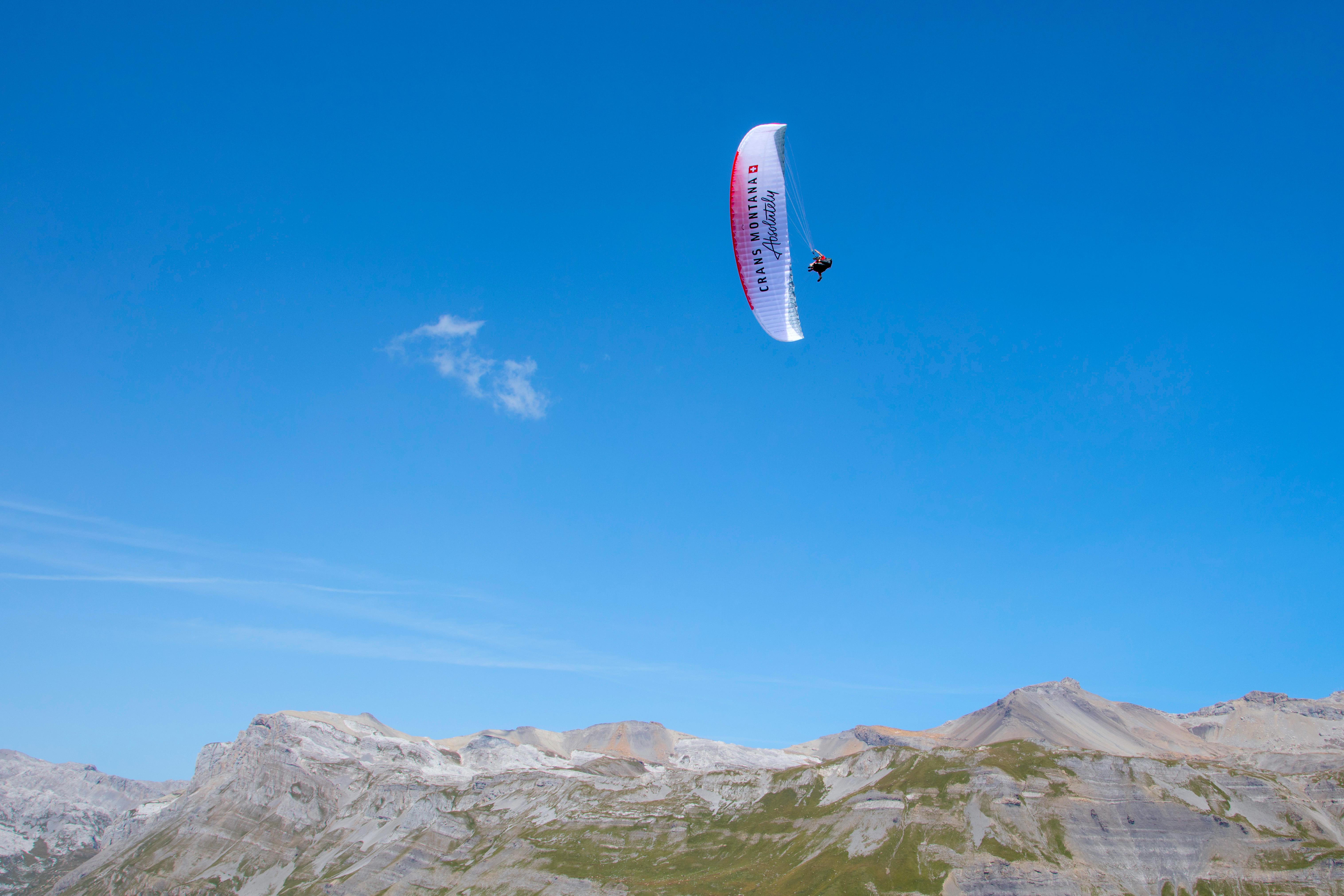 Durch die Lüfte und Bergwelten von Crans Montana schweben.