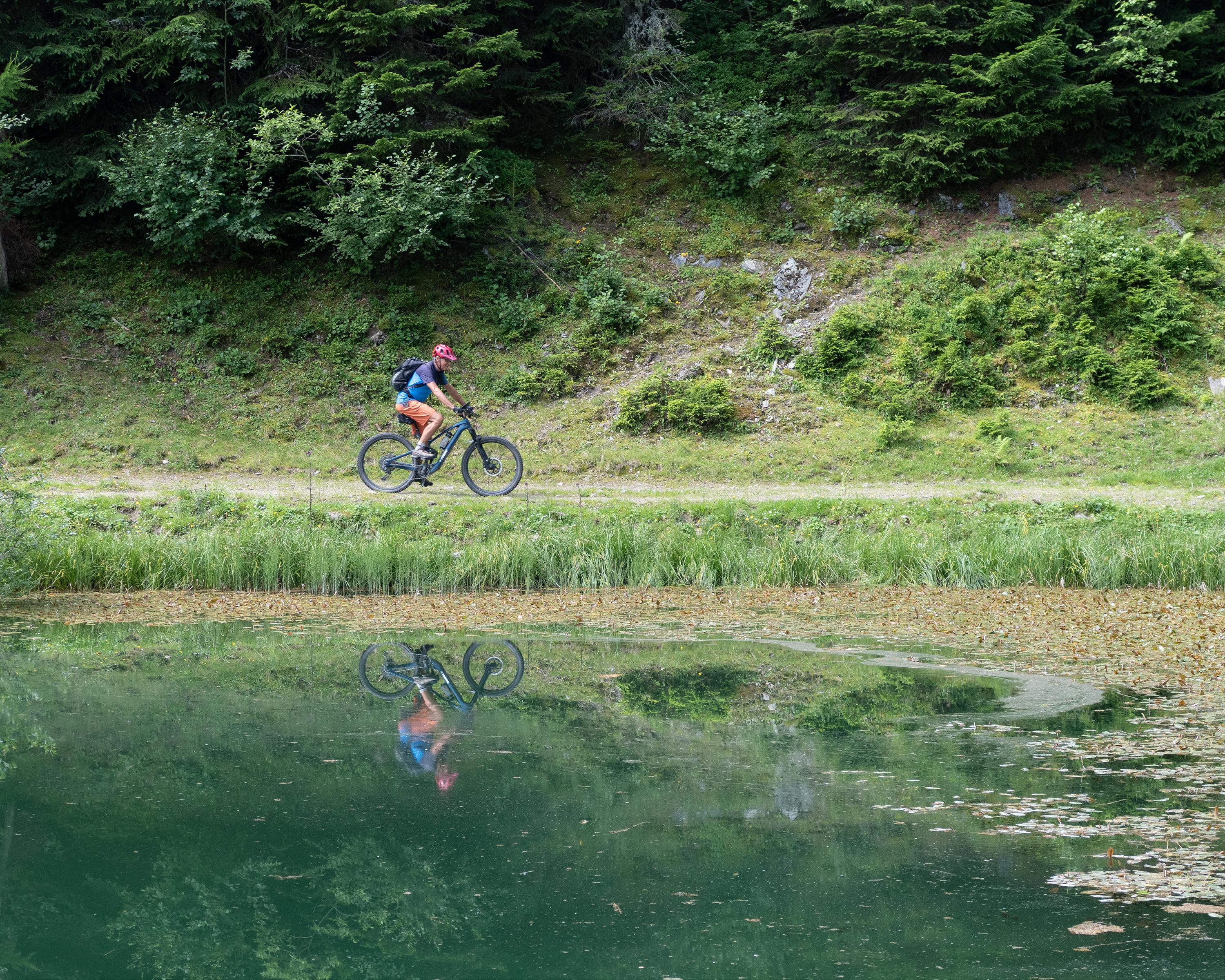 Der Aufstieg von Falens bis zum Lag da Laus geht in die Beine. Oben kann man sich am See in herrlich ruhiger Umgebung erholen, bevor die teils technische und anspruchsvolle Abfahrt beginnt. Unterwegs öffnet sich bei mehreren Aussichtspunkten ein schöner Blick über den weiten Talkessel.