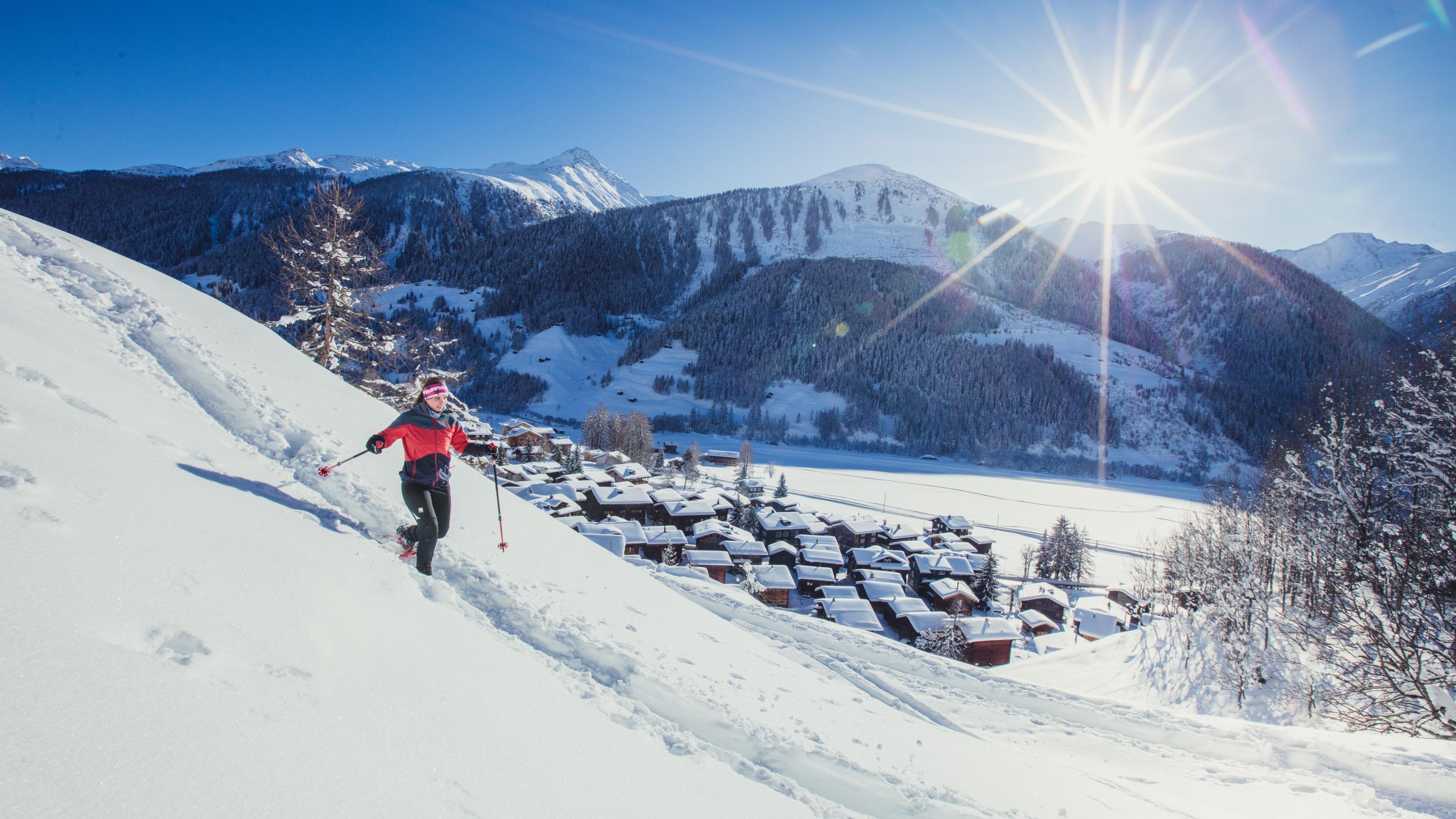 Das sonnige Oberwalliser Hochtal mit seinen urchigen Dörfern mit Holzhäusern und weissen Kirchen ist im Winter ein attraktives Langlaufparadies und im Sommer eine beliebte Wanderregion.