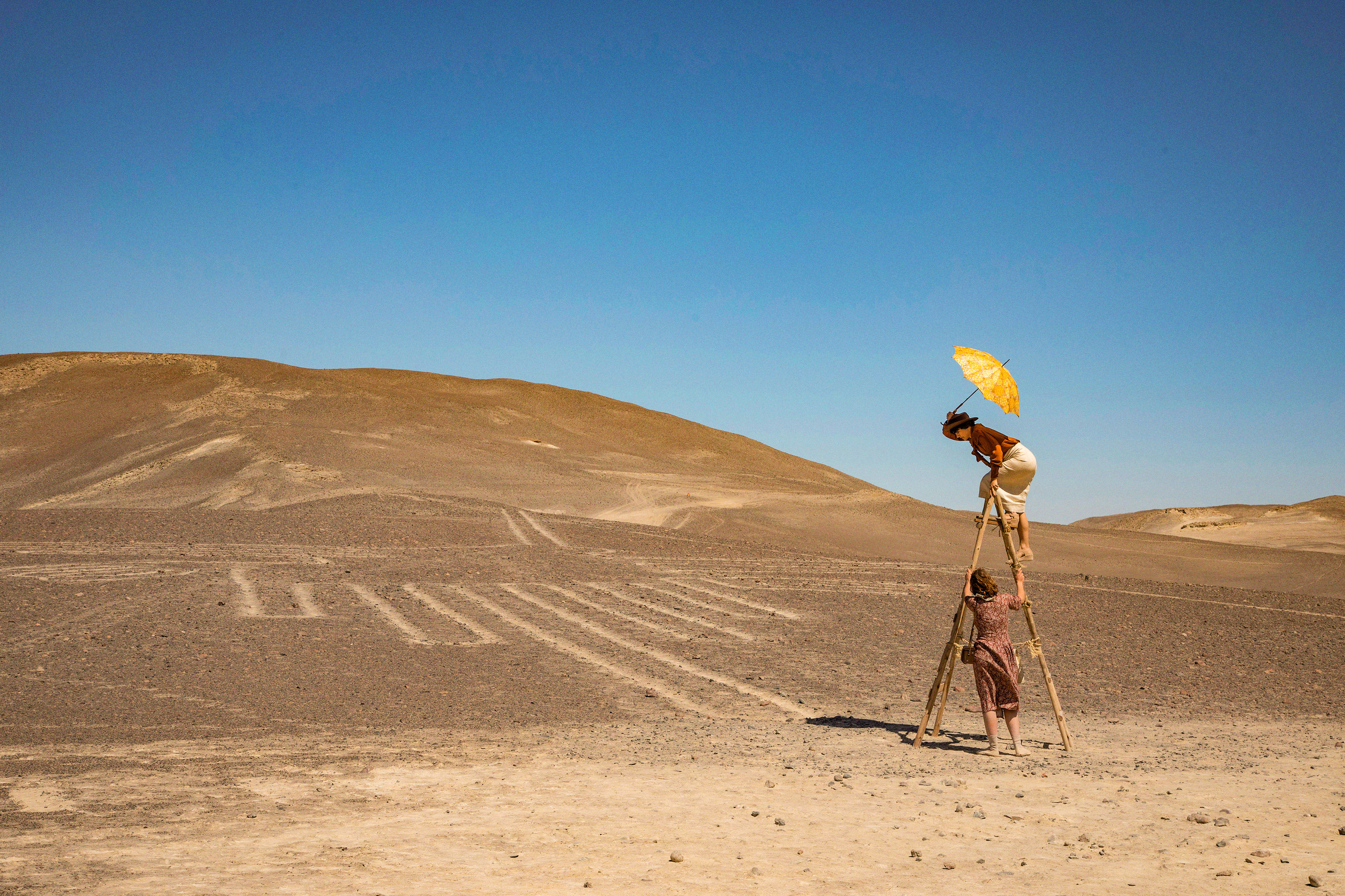 Peru in den 1930er Jahren: Während sich in Europa der Faschismus ausbreitet, verdient sich die junge Dresdnerin Maria Reiche (Devrim Lingnau) als Mathematiklehrerin in der Hauptstadt Lima. Doch ihre wahre Berufung wartet weiter südlich der kosmopolitischen Metropole, in der Wüste von Nazca. Der französische Archäologe Paul (Guillaume Gallienne) überredet Maria, für ihn einige Schriftstücke zu übersetzen, von denen er sich Hinweise auf ein uraltes Kanalsystem in der Gegend erhofft. Stattdessen stossen sie mitten in der staubigen Einsamkeit auf eines der grössten Rätsel der Menschheitsgeschichte: gigantische, mit mathematischer Präzision in den Sand gescharrte Linien und Figuren, die Maria sofort in ihren Bann ziehen.