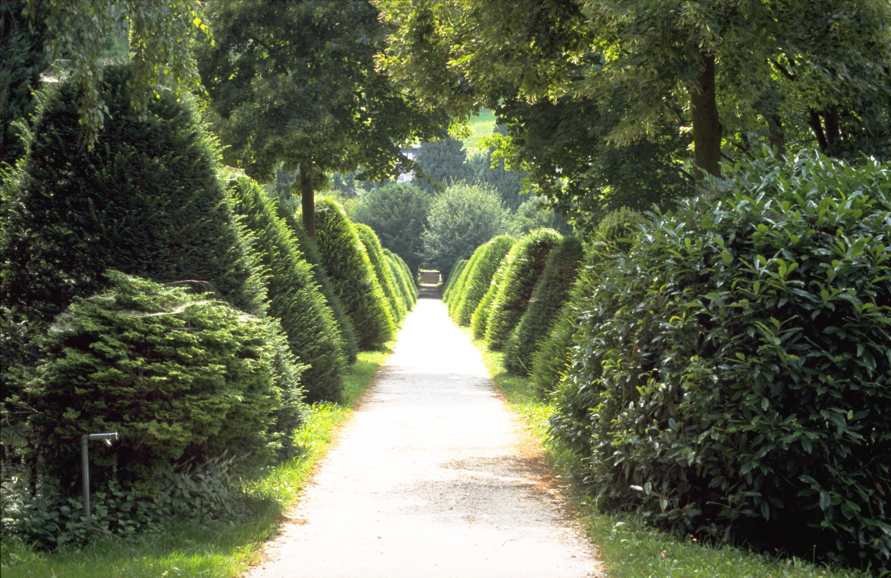 The Alter Stadtfriedhof was established in 1821 as a Catholic cemetery, but was also used by the Reformed population for burials after 1875. By the the mid-20th century, the cemetery could no longer provide the desired silence and seclusion as it was now surrounded by industrial buildings. The last burial took place in 1949. Since then, burials have only taken place in the family graves. Special features of the cemetery, which now serves as a park, are the conically-shaped cypress flanking the central aisle, the picturesque old groves and individual trees, and the artistic and historically significant family crypts.