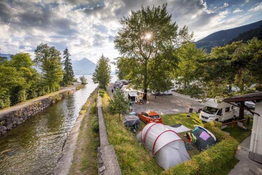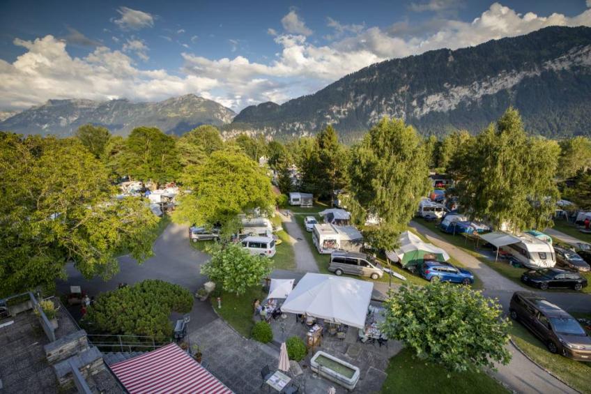 Welcome to Manor Farm, the only campsite in Interlaken located directly on the pristine Lake Thun, amidst the impressive mountains of the Bernese Oberland. Our campsite is an ideal location for a relaxing and active holiday. Open year-round, the campsite offers a wide range of accommodation options: pitches for tents, caravans, and motorhomes; rental tents, rental mobile homes, vacation apartments, and its own hotel. Two restaurants with a diverse menu invite you to dine.