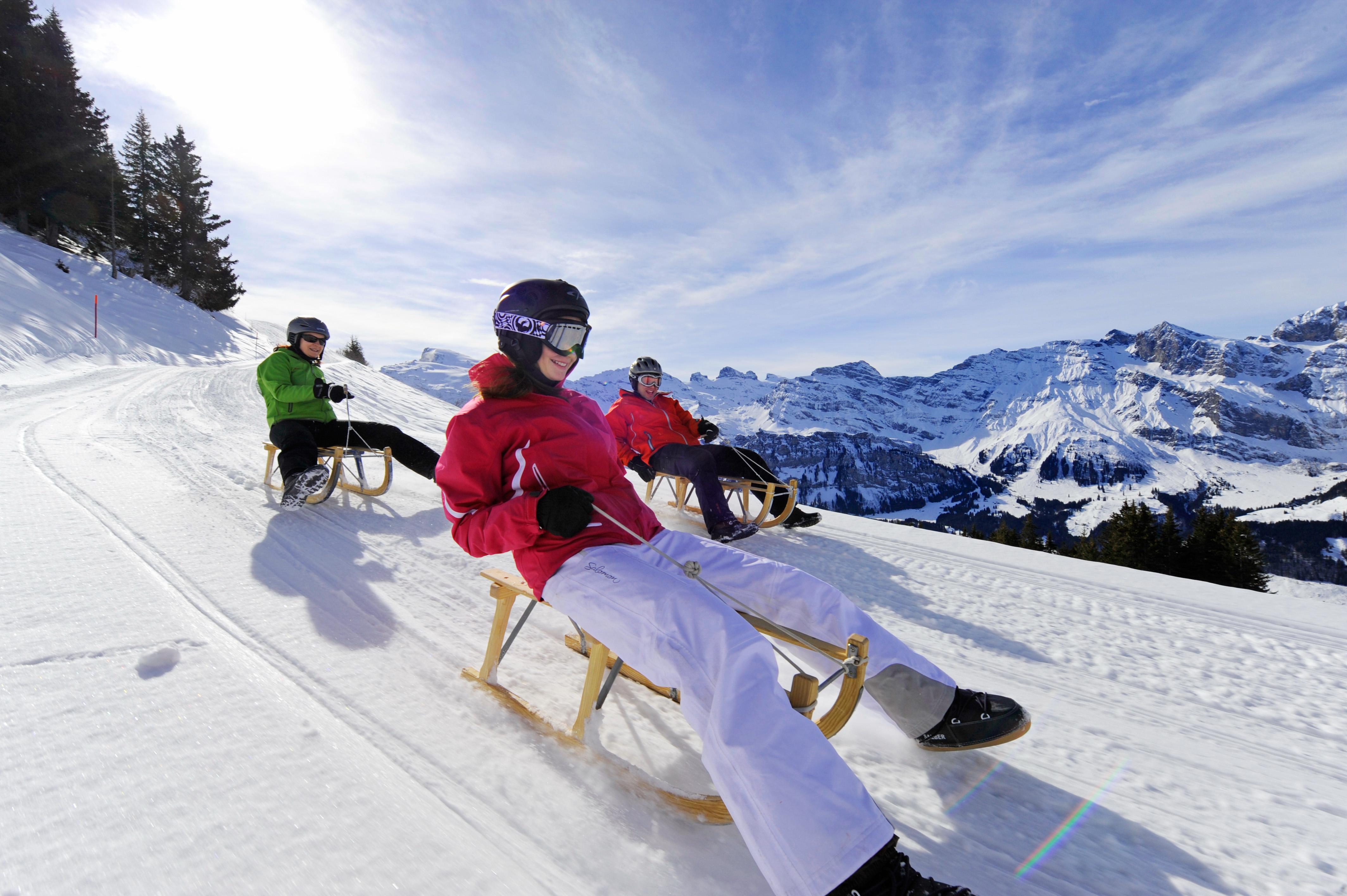Brunni’s two sunny and 2.5 kilometer-long toboggan runs to Ristis are guaranteed fun for people of any age.