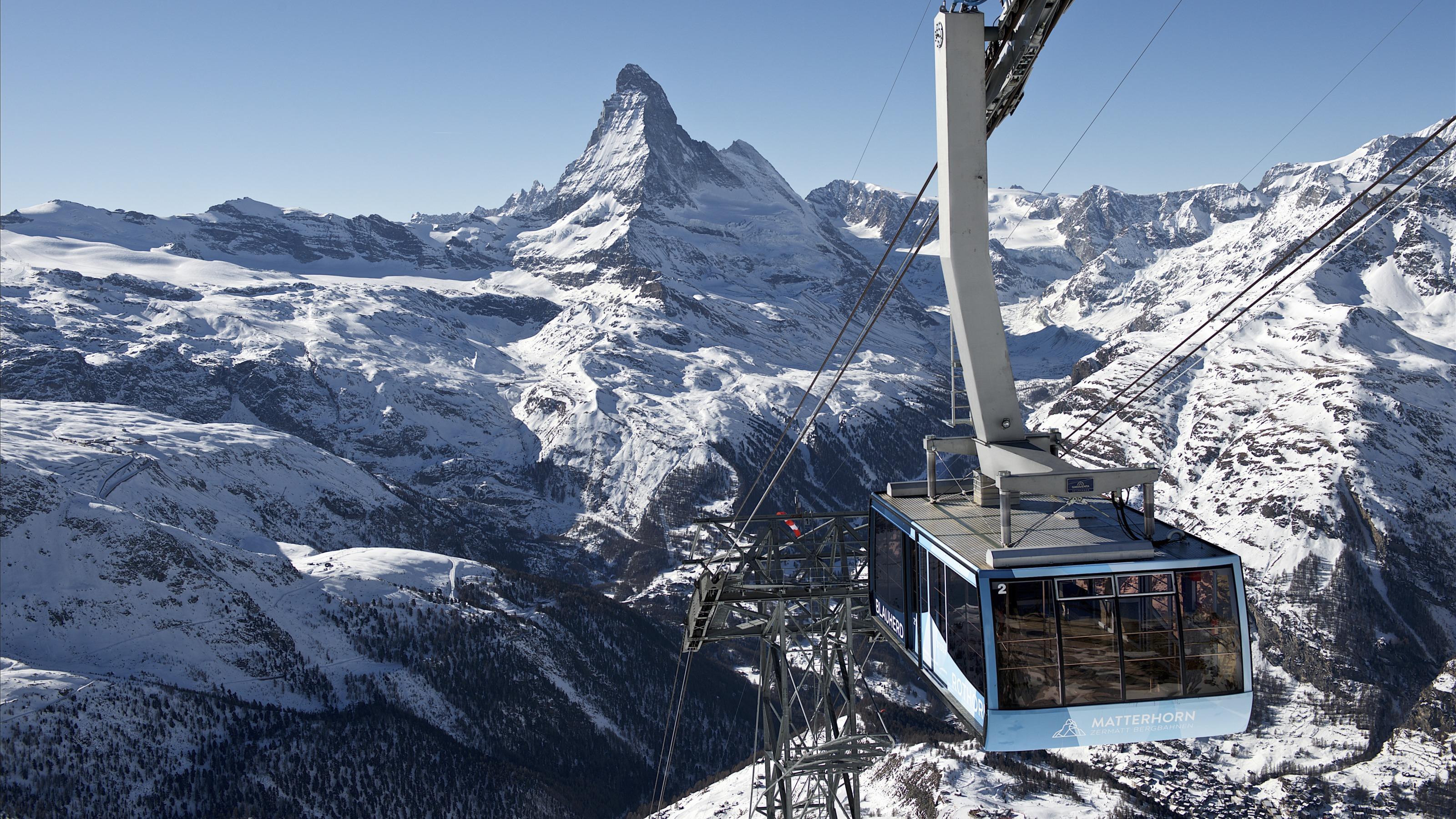 Finally, a big cable car takes visitors to the summit of the Unterrothorn (3,103 metres above sea level). The views of most of the 38 four-thousand-metre peaks around Zermatt are quite simply breathtaking.