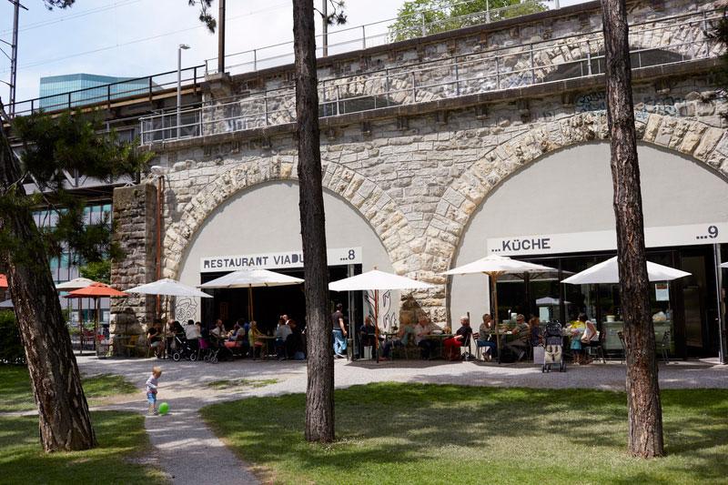 Where ships were once built and motors bolted together, today you view a colorful urban lifestyle. And undisputed highlights - in addition to Zurich’s new Prime Tower in the west of course; which is Switzerland’s second tallest building - is Frau Gerolds Garten: the charming city garden with restaurant and bar, with neighboring Friday container tower and leisure and pleasure mile to stroll beneath the arched viaducts.