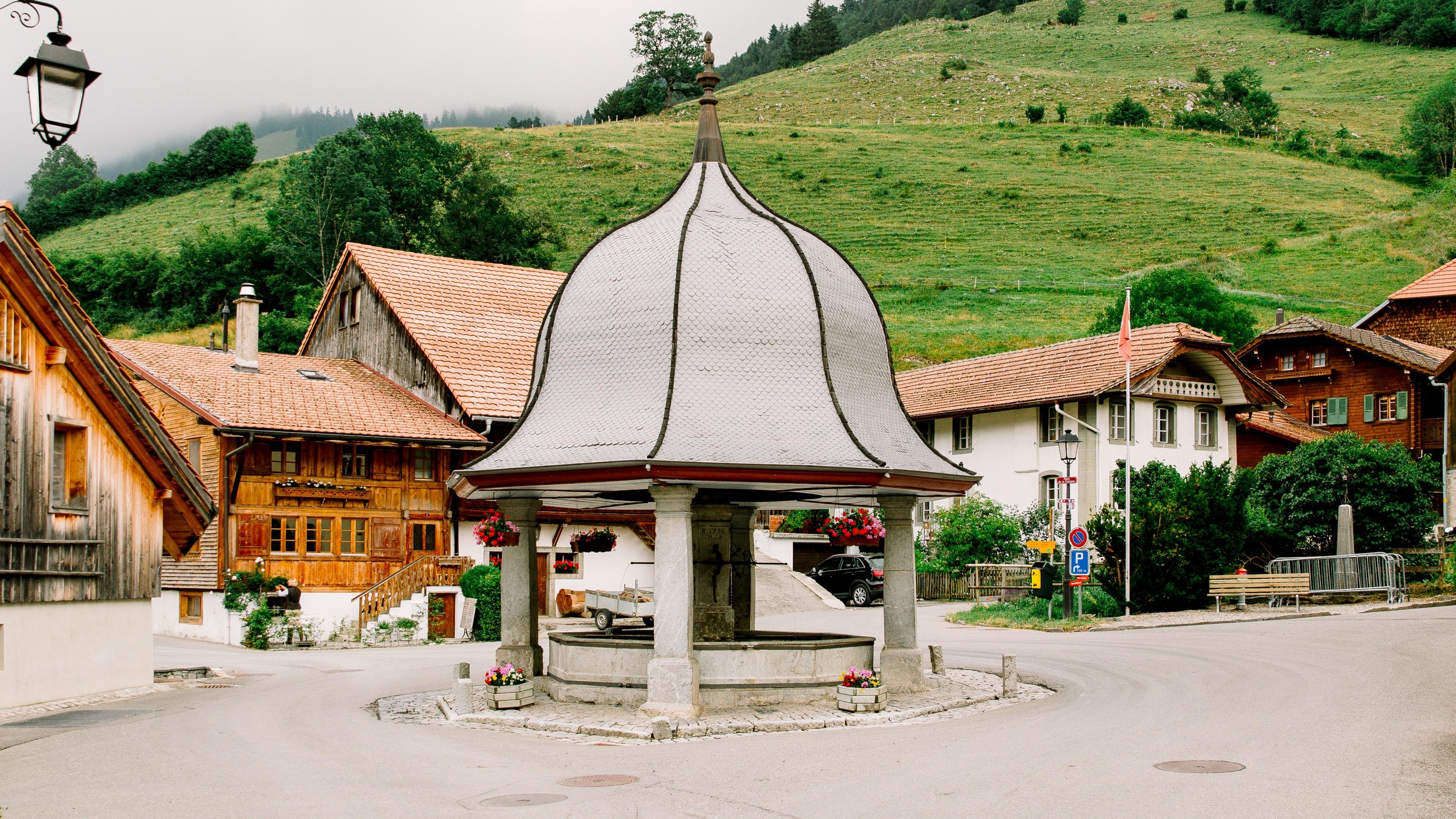Lessoc is positioned between the municipality of Bulle and the locality of Montbovon. Its village square, into which the streets converge in the shape of a star, is one of the most beautiful in Switzerland. It contains a covered fountain and is ringed by well-preserved buildings. In addition to the village square, the locality is characterised by rows of well-preserved farmhouses with splendid gardens.