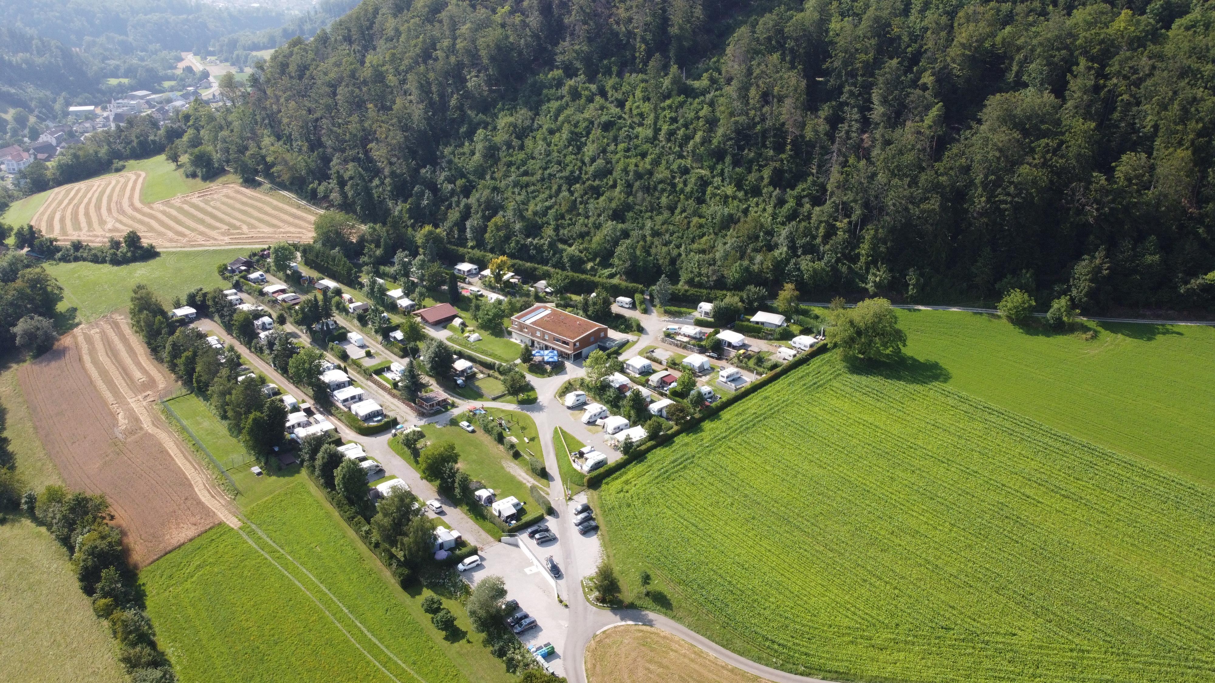 Il campeggio è immerso in un idilliaco paesaggio del Giura, proprio ai margini della foresta, un po' isolato dal villaggio, su una collina con una splendida vista sui villaggi e sulle colline circostanti. I dintorni invitano a passeggiate ed escursioni. È il luogo ideale per trascorrere qualche giorno di pace, natura e cordiale ospitalità. Il sito ospita affittuari stagionali ed è visitato anche da viaggiatori provenienti da tutto il mondo per pernottamenti o vacanze.