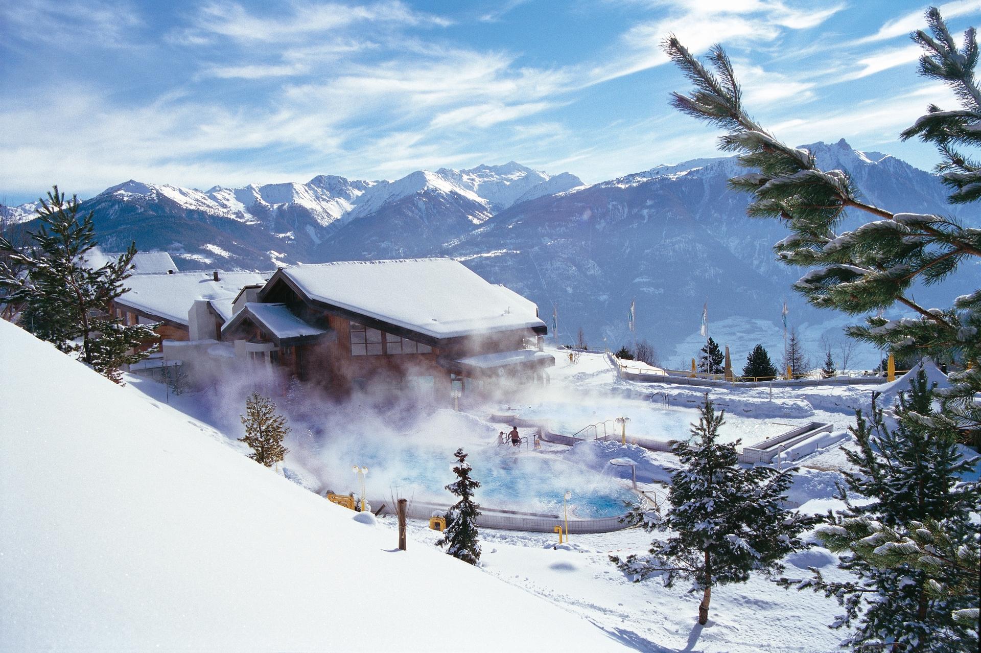 Il relax comincia con il viaggio in autopostale, la traversata dell'affascinante valle del Rodano e la salita verso la celebre stazione termale di Ovronnaz, a 1400 metri di altitudine.