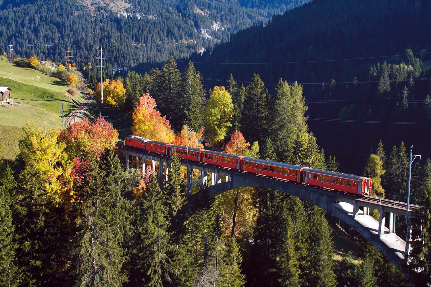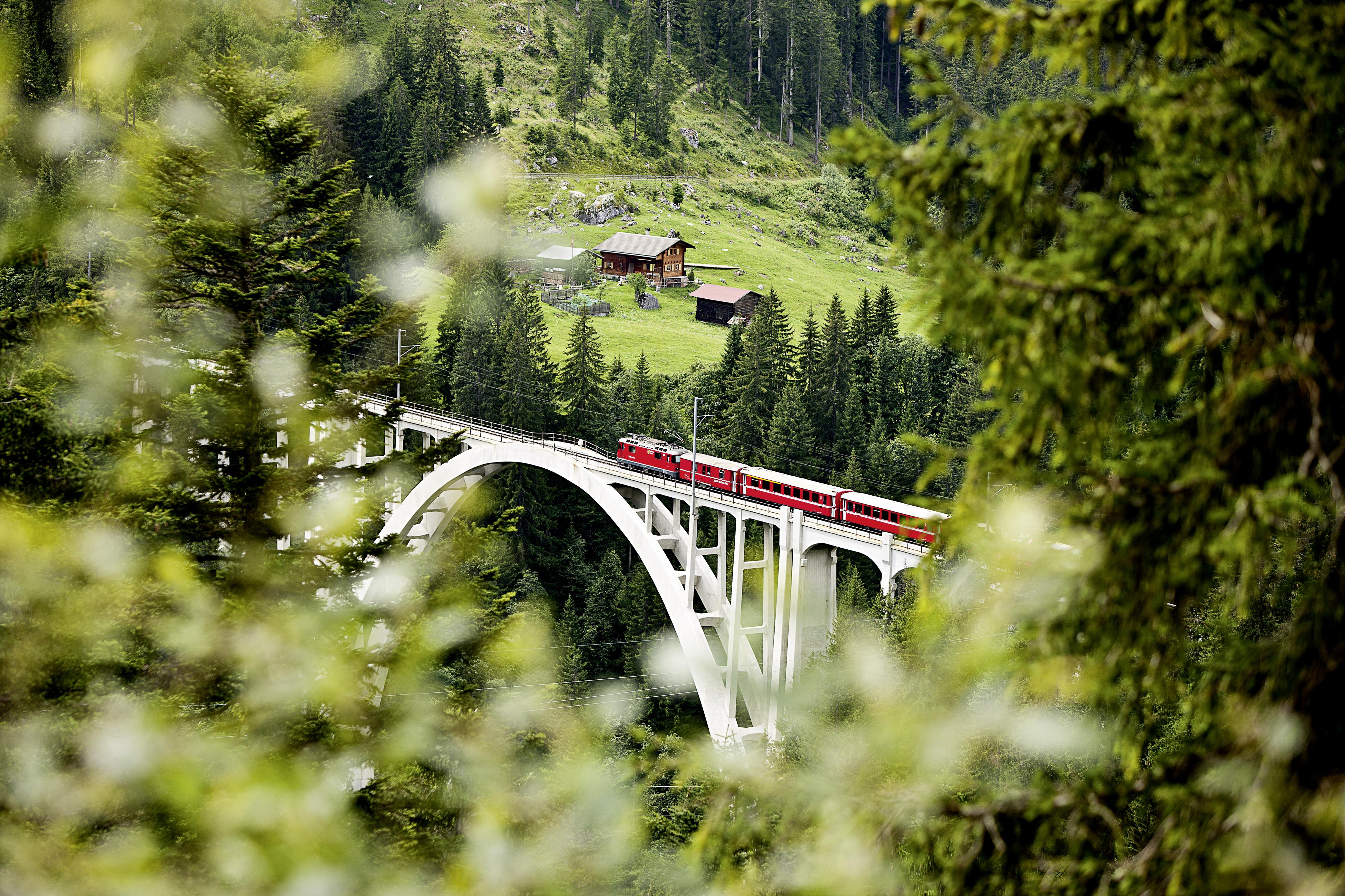Nel 1889 fu costruita la prima tratta della futura Ferrovia retica (RhB), il superamento dei territori alpini costellati di rocce e profondi dirupi costituiva una sfida quasi impossibile. Così il viadotto di Langwies, sul tragitto Coira–Arosa, è un magnifico esemplare lungo 287 metri e, all’inaugurazione nel 1914, fece furore in tutto il mondo. Accanto ai viadotti di Wiesen e Landwasser, rappresenta ancora oggi un’attrazione sui quasi 400 chilometri della rete della RhB, che vanta anche 100 tunnel e 500 ponti.