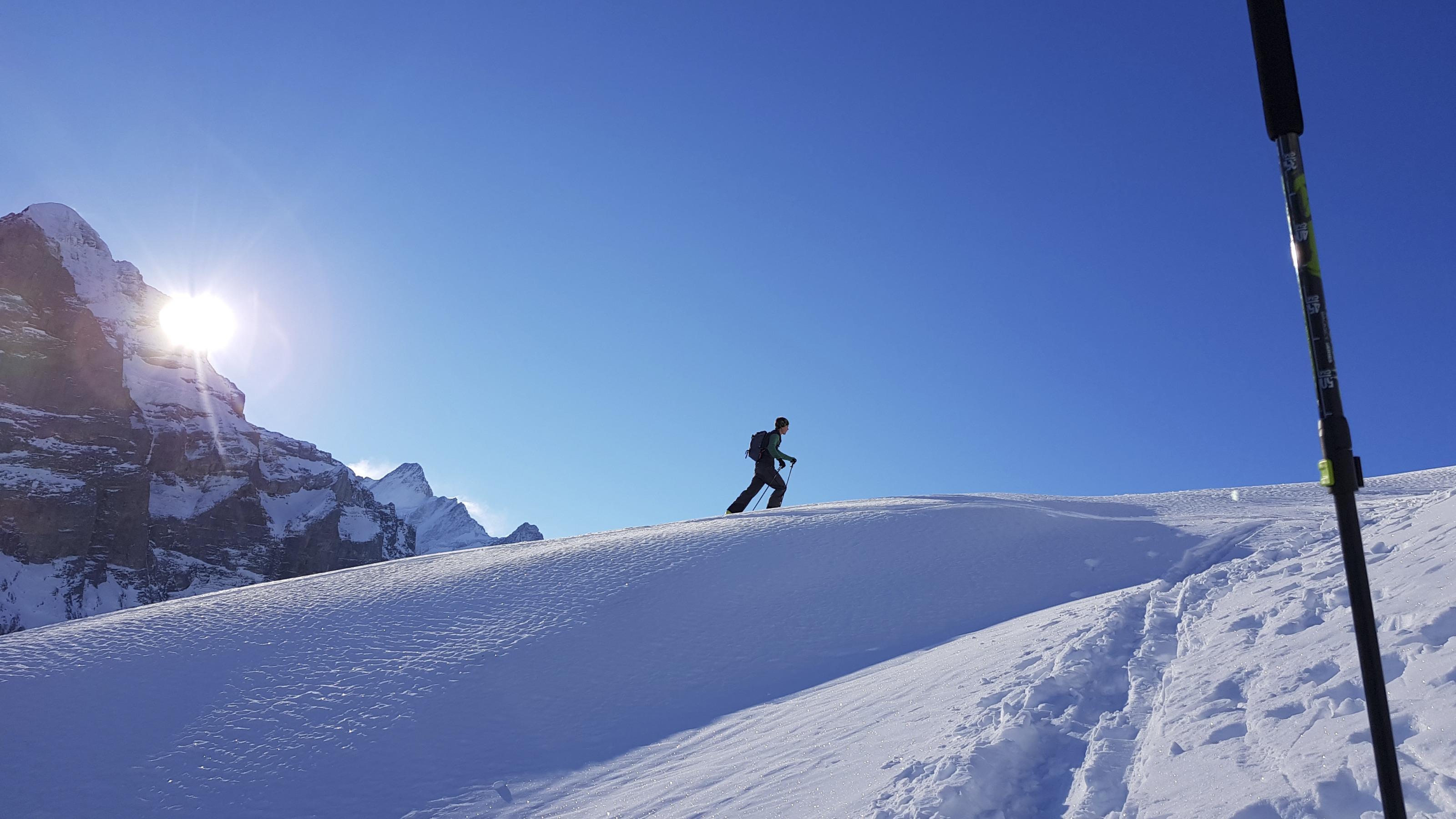 Quello dello Gemsberg è un itinerario facile all’interno del comprensorio di sport invernali del Grindelwald-First, che dalla vetta offre una vista incredibilmente spettacolare sulle Alpi bernesi innevate.