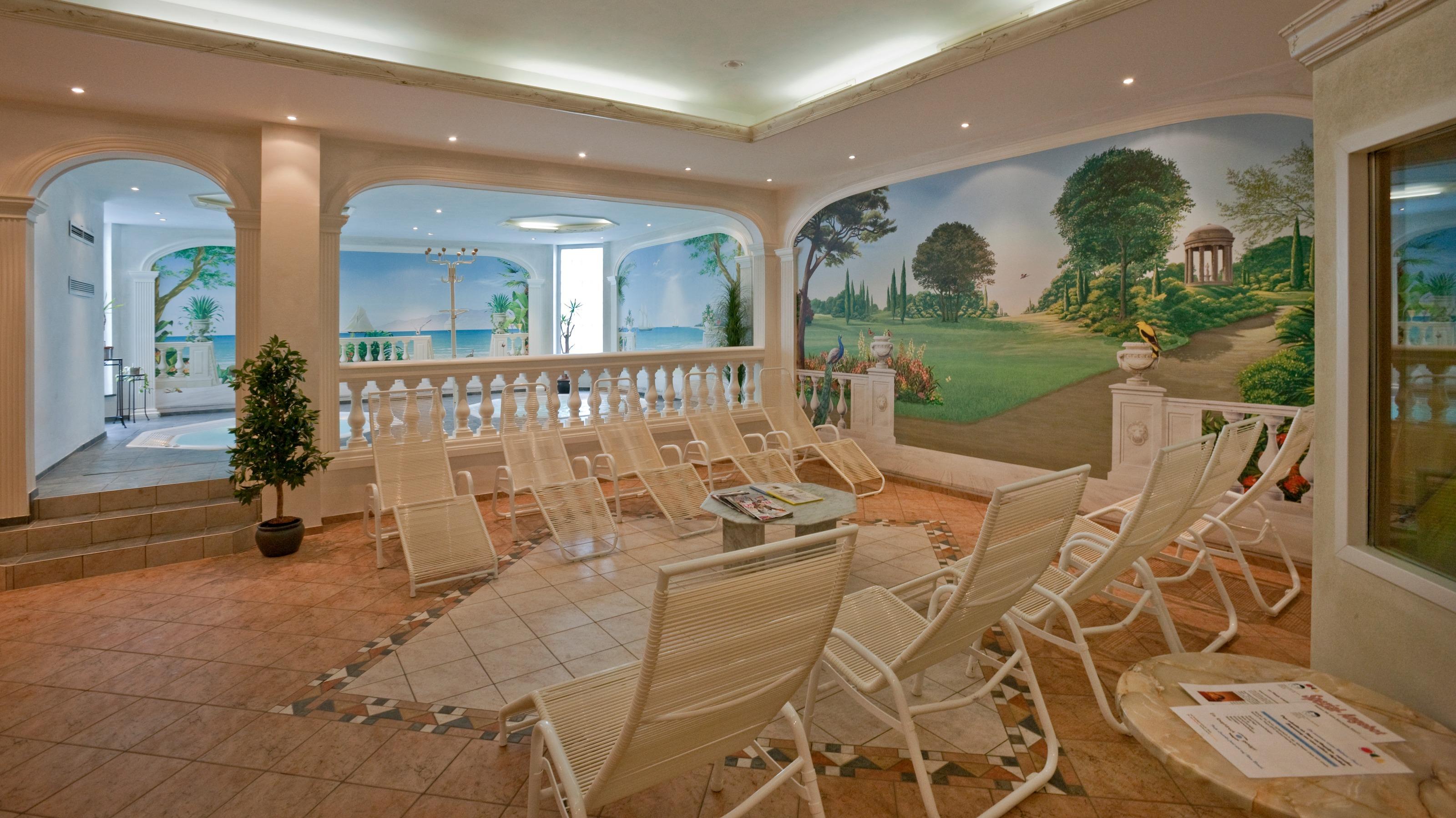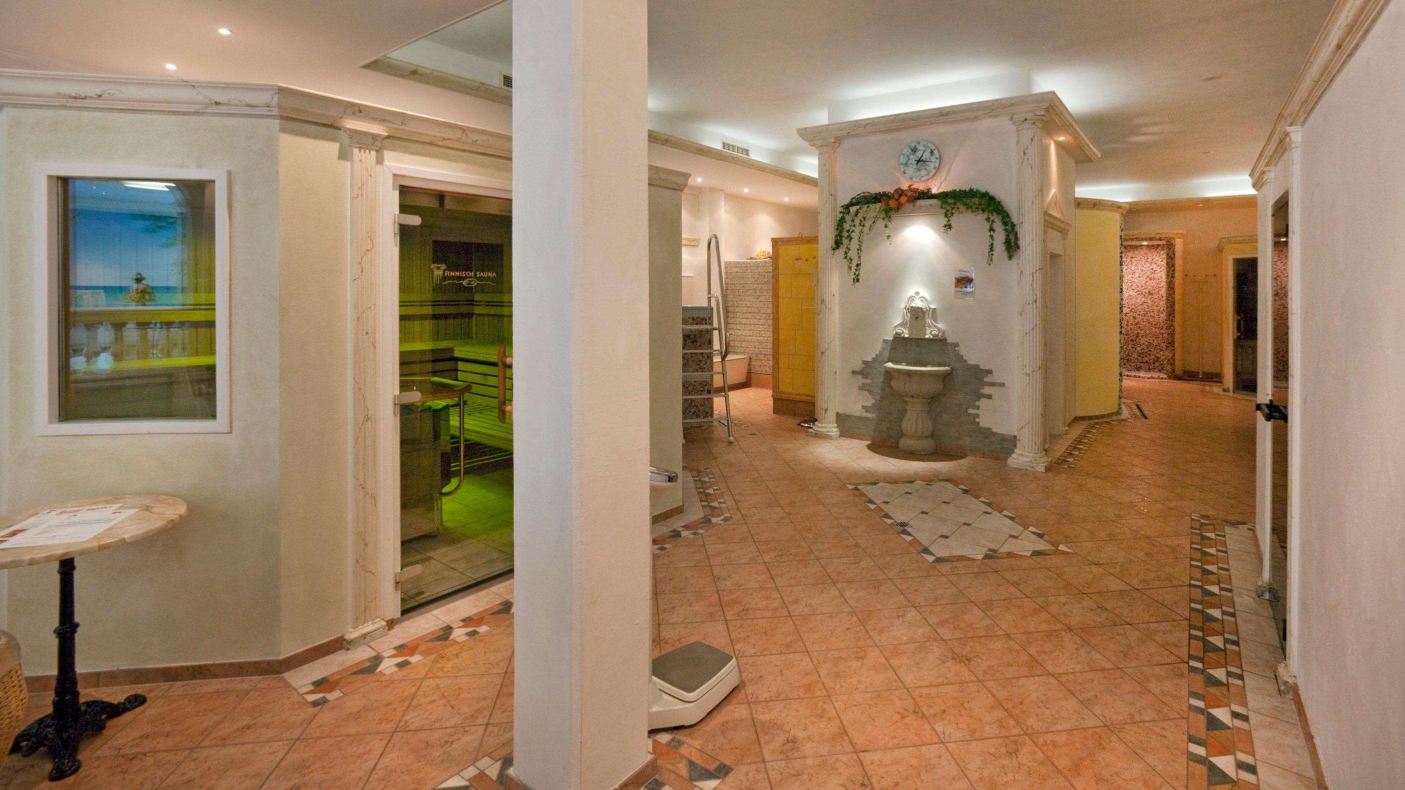 L’oasi benessere Olympica è un posto da sogno organizzato in spazi generosi per le persone che desiderano colmare per un po’ l’antica nostalgia del paradiso. La variegata offerta comprende 3 bagni turchi, 3 saune e 2 vasche idromassaggio e promuove riposo, rigenerazione, terapia e gioia di vivere. Scopri un centro unico nel suo genere! Inoltre, gli ospiti possono prenotare trattamenti cosmetici e massaggi. Al di fuori dei normali orari di apertura è possibile affittare l’area benessere o aprirla appositamente per gli ospiti. Tutte le richieste in merito vengono elaborate individualmente.