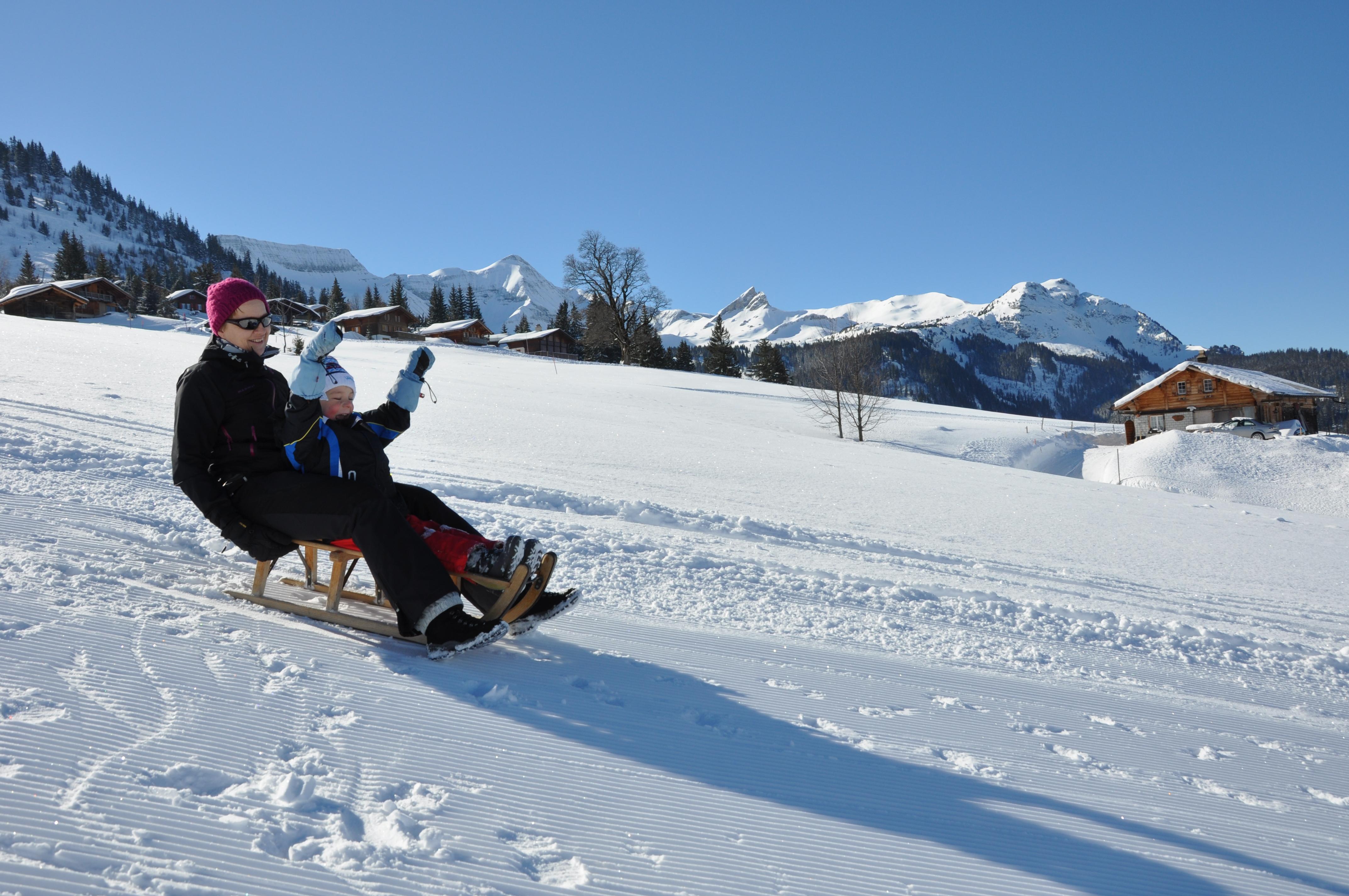 La pista per slitte sull’Axalp inizia con la corsa in seggiovia da Windegg e offre lungo tutto il percorso una vista fantastica sulle vette ghiacciate dell’Oberland bernese. Ad eccezione della prima tratta, leggermente più ripida, il sentiero di media difficoltà attraversa boschi di pini innevati e aree molto varie.