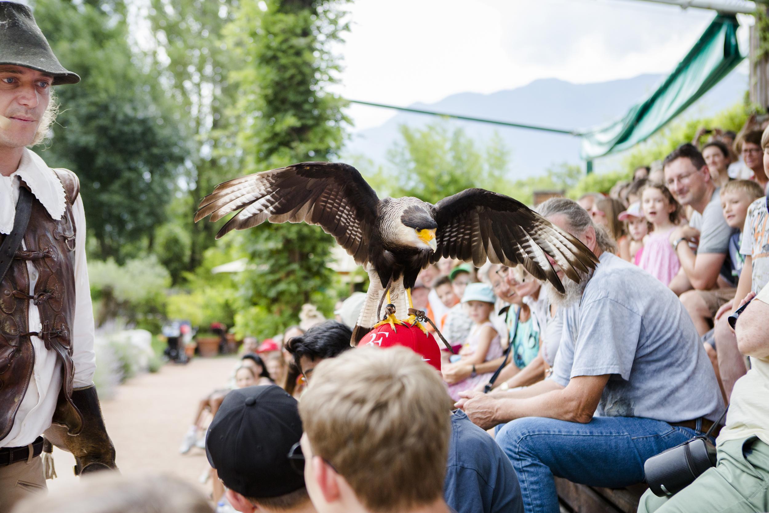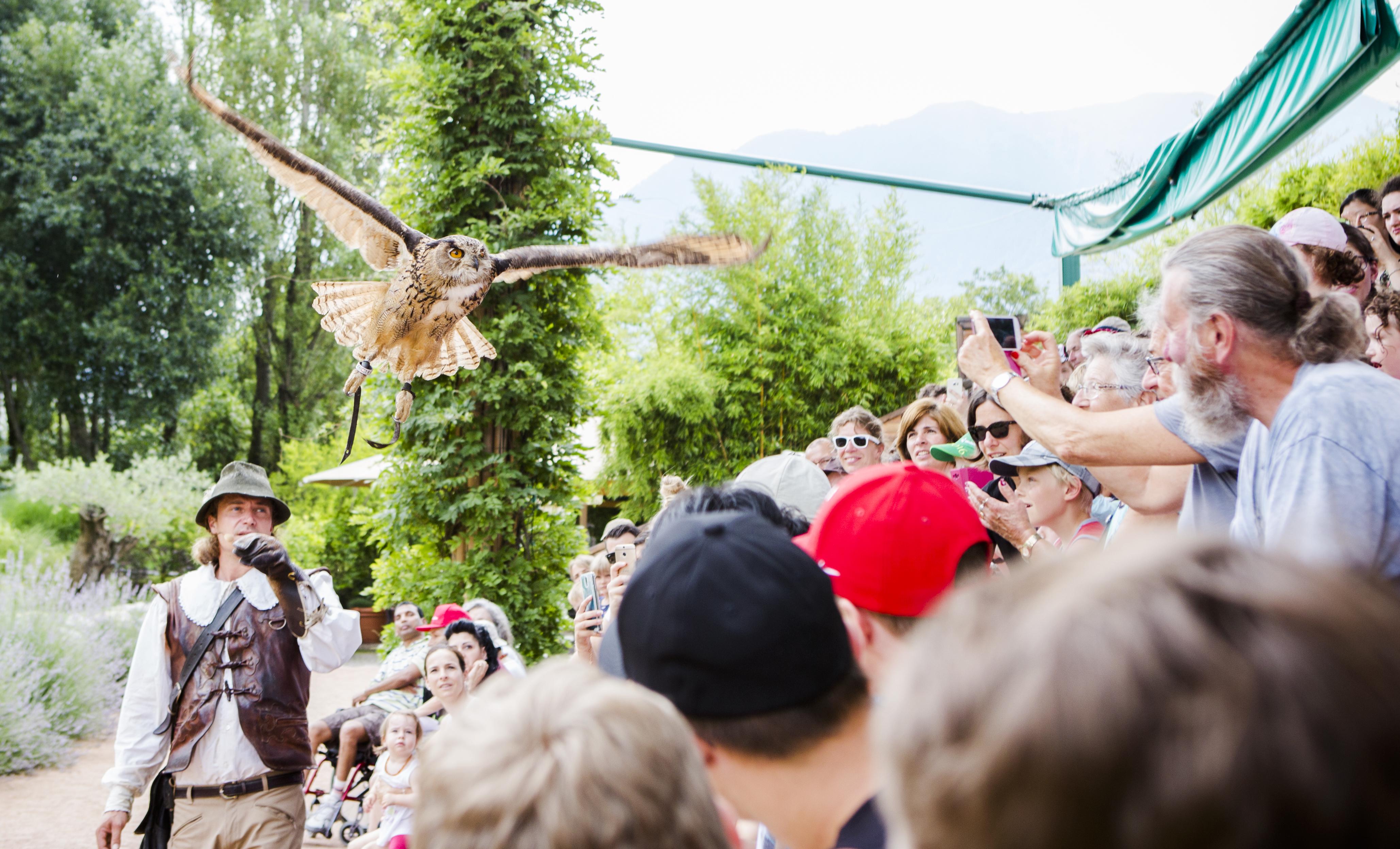 Lasciatevi emozionare dal mondo dei rapaci, in un ambiente rispettoso degli animali, dove potete osservare da vicino il volo di aquile, falci, gufi e avvoltoi. Mentre nell’arena gli uccelli volteggiano sulle teste degli spettatori, il falconiere narra la storia di questa antica arte.
