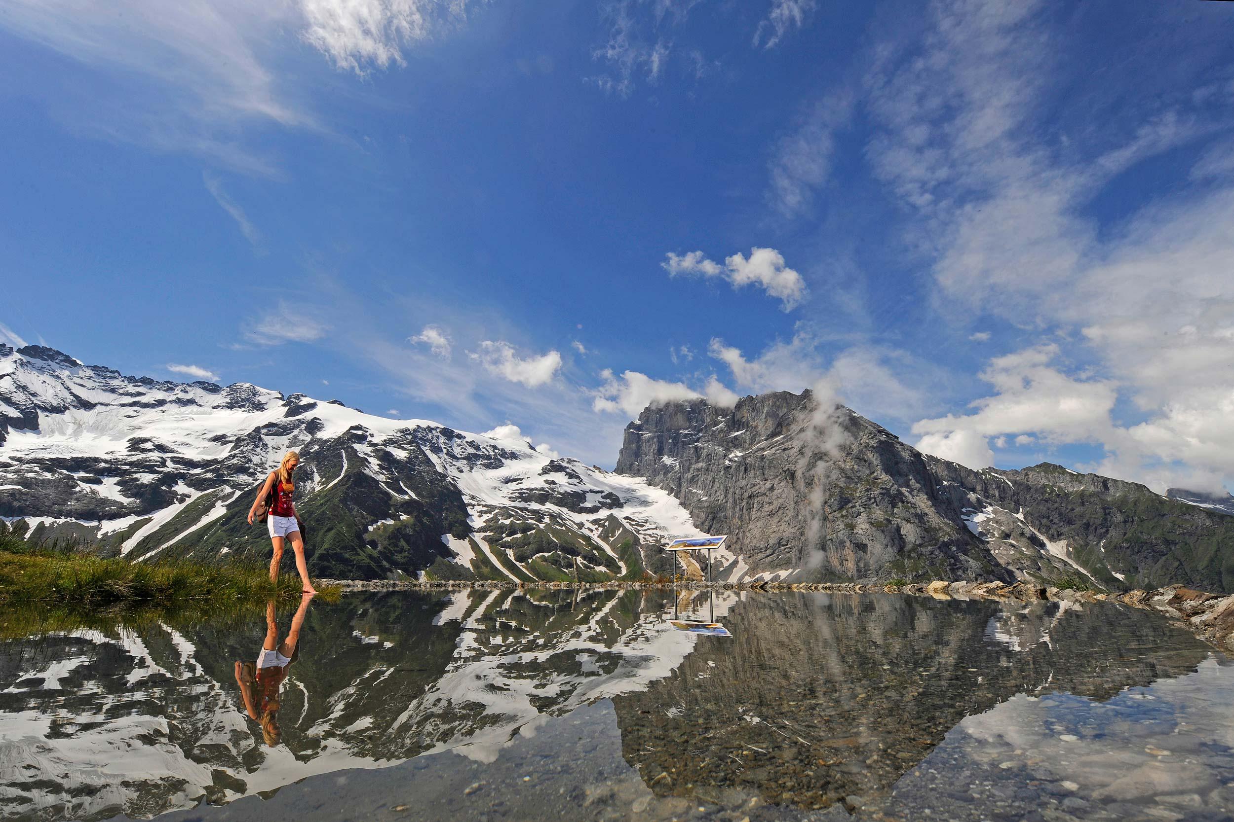 La tranquilla escursione circolare nel mezzo delle alte Alpi di Engelberg è composta da dieci diverse stazioni che invitano a soffermarsi e osservare. In questo tour l'acqua è presente nelle forme più svariate: il laghetto dalle acque a specchio, i ruscelli di montagna, le fontane, le doline e il biotopo. Queste acque sono frequentate da numerosi abitanti come girini, rane e salamandre.