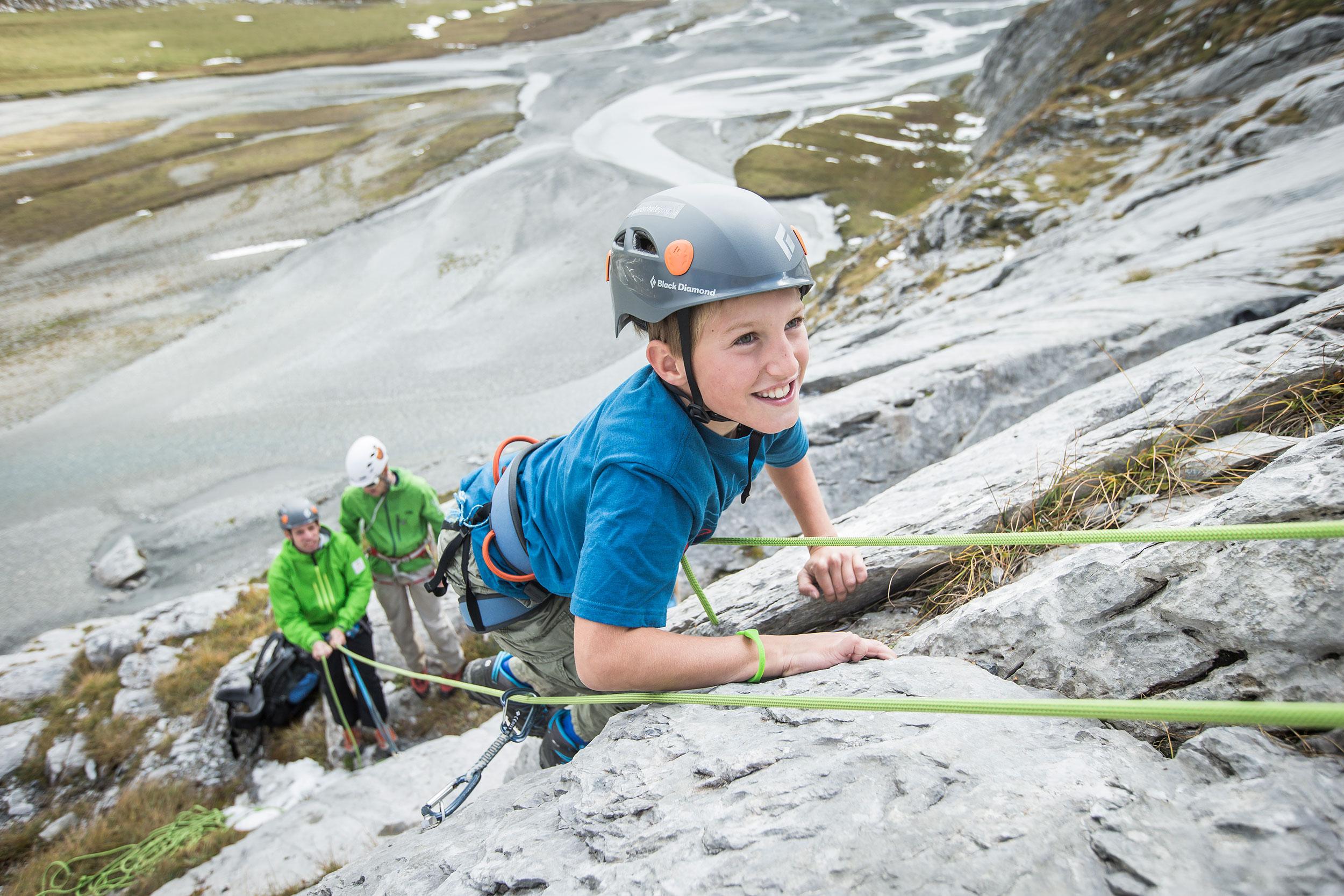 Il patrimonio naturalistico dell’UNESCO Sardona si distingue per le straordinarie montagne e, nella zona di arrampicata della parte inferiore del Segnesboden, lo si ammira da vicino: delle guide di professione della scuola di alpinismo Grischa mostrano ai partecipanti come si affronta una parete rocciosa in completa sicurezza. Ed ecco che la passione per questo sport inizia a farsi viva...