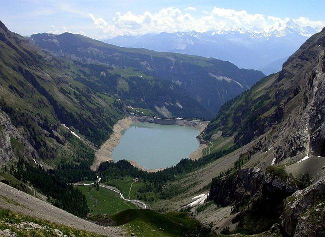 Entrata in servizio nel 1957, misura 156 metri di altezza e delimita un bacino idrico di 18,7 chilometri quadrati. Le possibilità di escursioni intorno al lago sono numerose. La diga può essere raggiunta sia in auto privata che con l’autopostale.