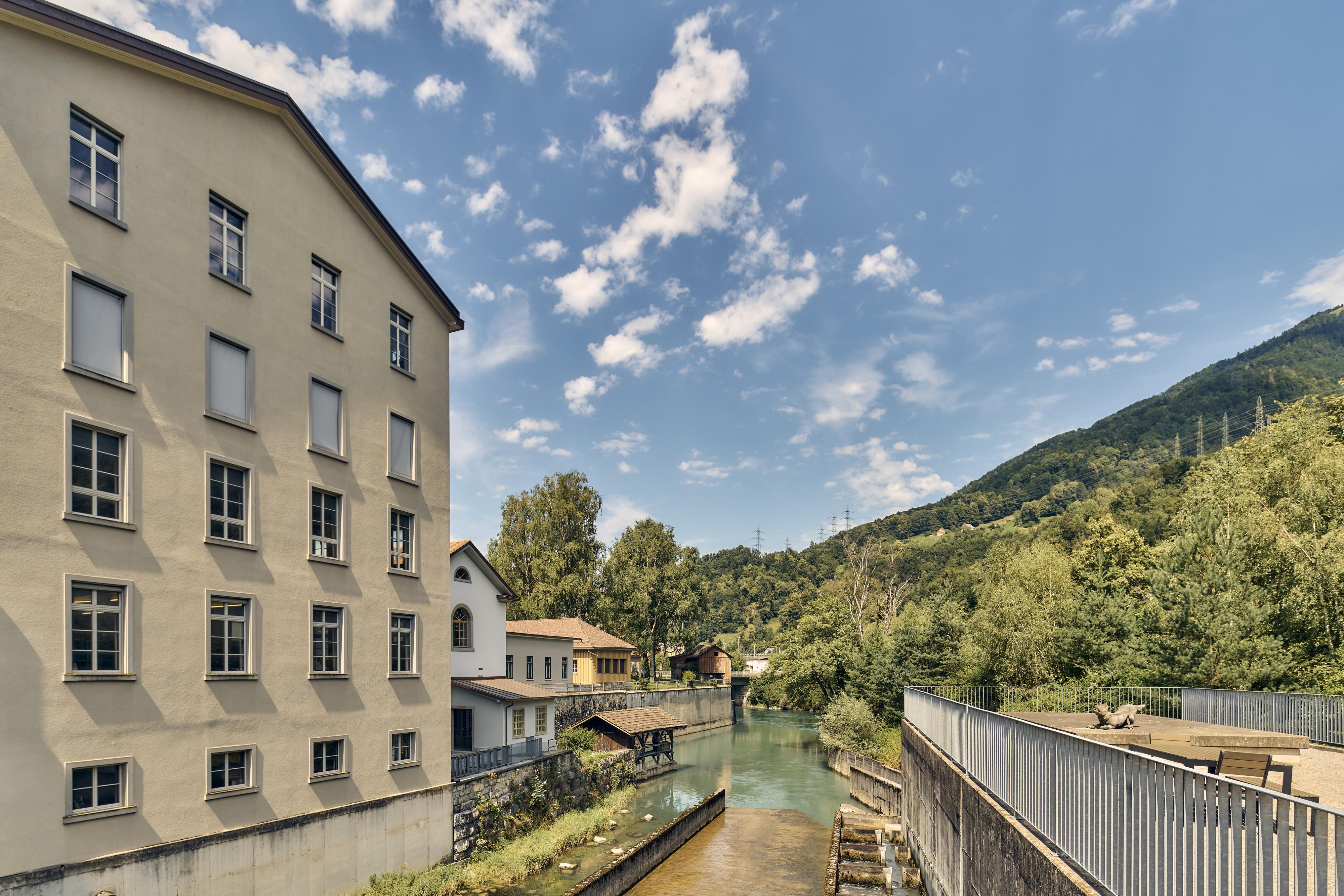 L’esteso paesaggio industriale, il cui emblema è l’alta ciminiera, raggruppa sulla sponda sinistra del canale della Linth stabilimenti produttivi, uffici amministrativi, magazzini e centrali elettriche, ma anche edifici residenziali di vario livello, un ristorante e un’azienda agricola. I volumi delle costruzioni definiscono l’andamento dei vicoli e sono mirabilmente allineati lungo i corsi d’acqua e una strada di transito. Oltre ai due antichi edifici che ospitavano la produzione, di particolare interesse architettonico sono anche l’edificio amministrativo del 1909/10, la villa padronale del 1910 e una lunga e alta casa operaia risalente al 1861.