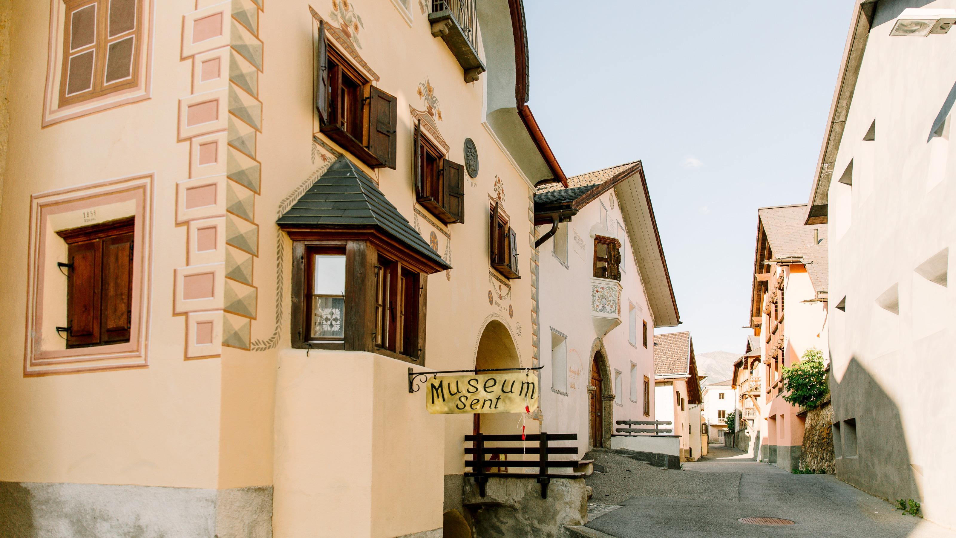 Il pittoresco villaggio di Sent, roccaforte del romancio nella Bassa Engadina, gode di una posizione soleggiata e panoramica a strapiombo sul fondovalle, nel mezzo di vaste aree agricole e boschive.