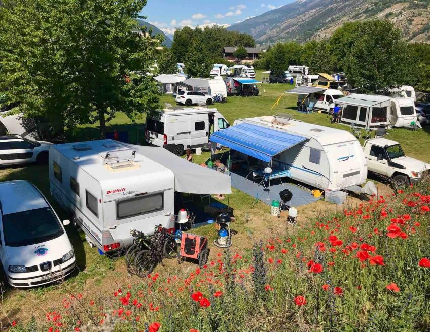 Le camping Mühleye de Viège est situé à l'ouest de l'entrée de la ville, à l'écart du bruit de la circulation. Bénéficiant d'une situation centrale privilégiée dans le Haut-Valais, Viège est un point de départ idéal pour les régions de vacances de Zermatt, de la vallée de Saas, d'Augstbord, du Lötschenthal, de Grächen, d'Aletsch, du Simplon et du Bas-Valais. Le camping Mühleye est le camp de base idéal pour de nombreux amoureux de la nature et de la montagne qui partent en randonnée, en excursion et en excursion au départ de Viège. Situé au calme, au cœur d'une forêt luxuriante, le camping Mühleye se trouve à seulement 10 minutes à pied du centre et de la gare de la charmante ville de Viège.