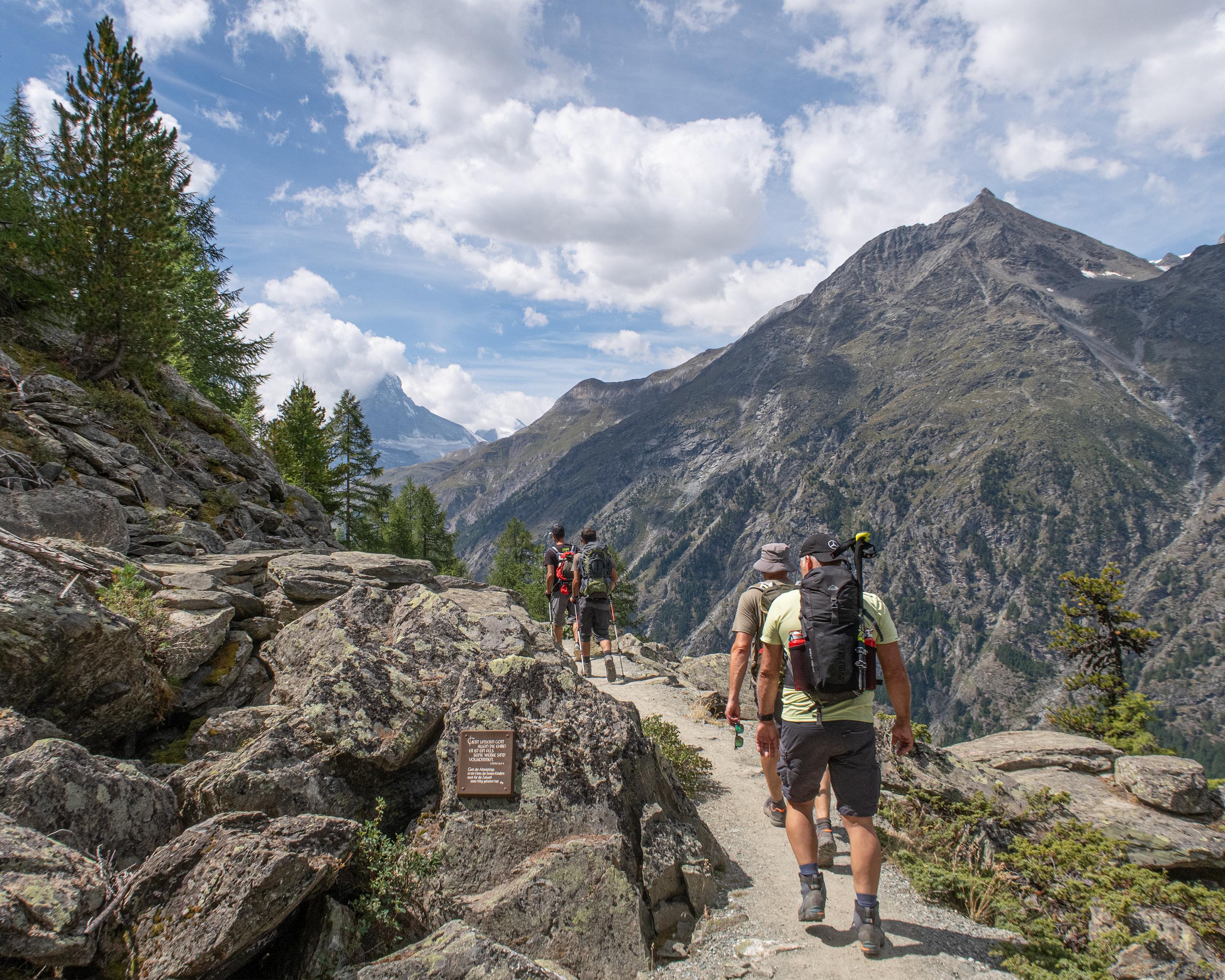 La dernière étape du Swiss Tour Monte Rosa débute sur le deuxième tronçon du sentier de l’Europe. La randonnée se déroule sur des sentiers exigeants creusés par endroits dans la roche, à travers des tunnels et des galeries et sur des ponts.