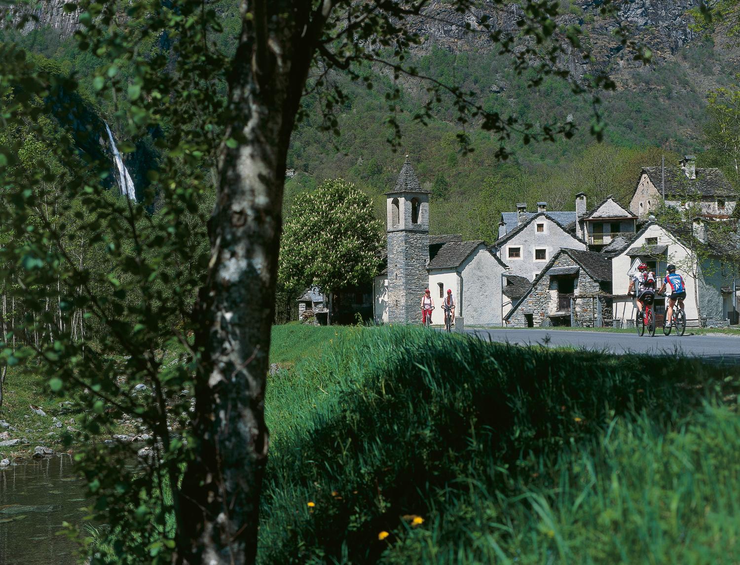 Le Val Bavona qui part de la Valle Maggia est la vallée la plus abrupte et la plus rocailleuse de tout l’arc alpin. Les versants rocheux qui le flanquent et s’élancent à la verticale sur des centaines de mètres sont les traces visibles laissées par les anciens glaciers qui recouvraient jadis la région. Tout au fond de cette vallée sauvage se trouve le glacier du Basodino. Au fil des siècles, l’homme a travaillé avec acharnement pour aménager des prés, des champs et des jardins entre les rochers et les gorges. Aujourd’hui encore, le promeneur peut découvrir de nombreux trésors naturels et culturels dans cette vallée sauvage. Les douze hameaux dispersés dans le val et habités seulement en été méritent le détour. L’un de ces petits villages, Foroglio, est composé de superbes maisons en pierre, avec en toile de fond la cascade éponyme dont les eaux mugissantes se précipitent vers la vallée du haut d’une falaise de 110 mètres. Un sentier didactique sur le thème «Inalpe et désalpe dans le Val Bavona» part des villages de Cavergno et Bignasco: en suivant le fond de la vallée, ce chemin mène les randonneurs en plusieurs étapes à Foroglio, puis, par le Val Calneggia, jusqu’aux prairies d’alpage à plus de 2000 mètres d’altitude.