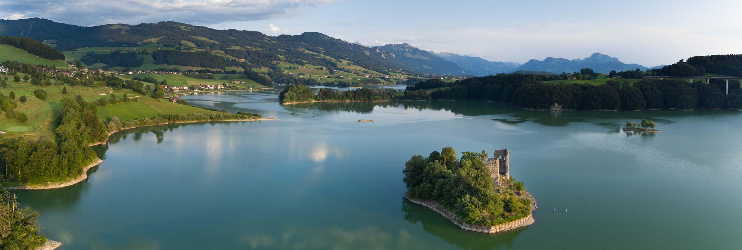 L’île d'Ogoz est une petite île sur le lac de la Gruyère accessible en canot et même parfois à pied, au printemps, quand le niveau du lac est très bas. Sur cette île se trouvent les ruines d'un château avec deux tours imposantes et une chapelle. Ruines d'un village du 13ème siècle qui a été noyé par les flots lors de la construction de la retenue sur la Sarine en 1947. Aujourd’hui, l’île et sa chapelle restaurée sont très prisées pour l’organisation de mariages et de manifestations.