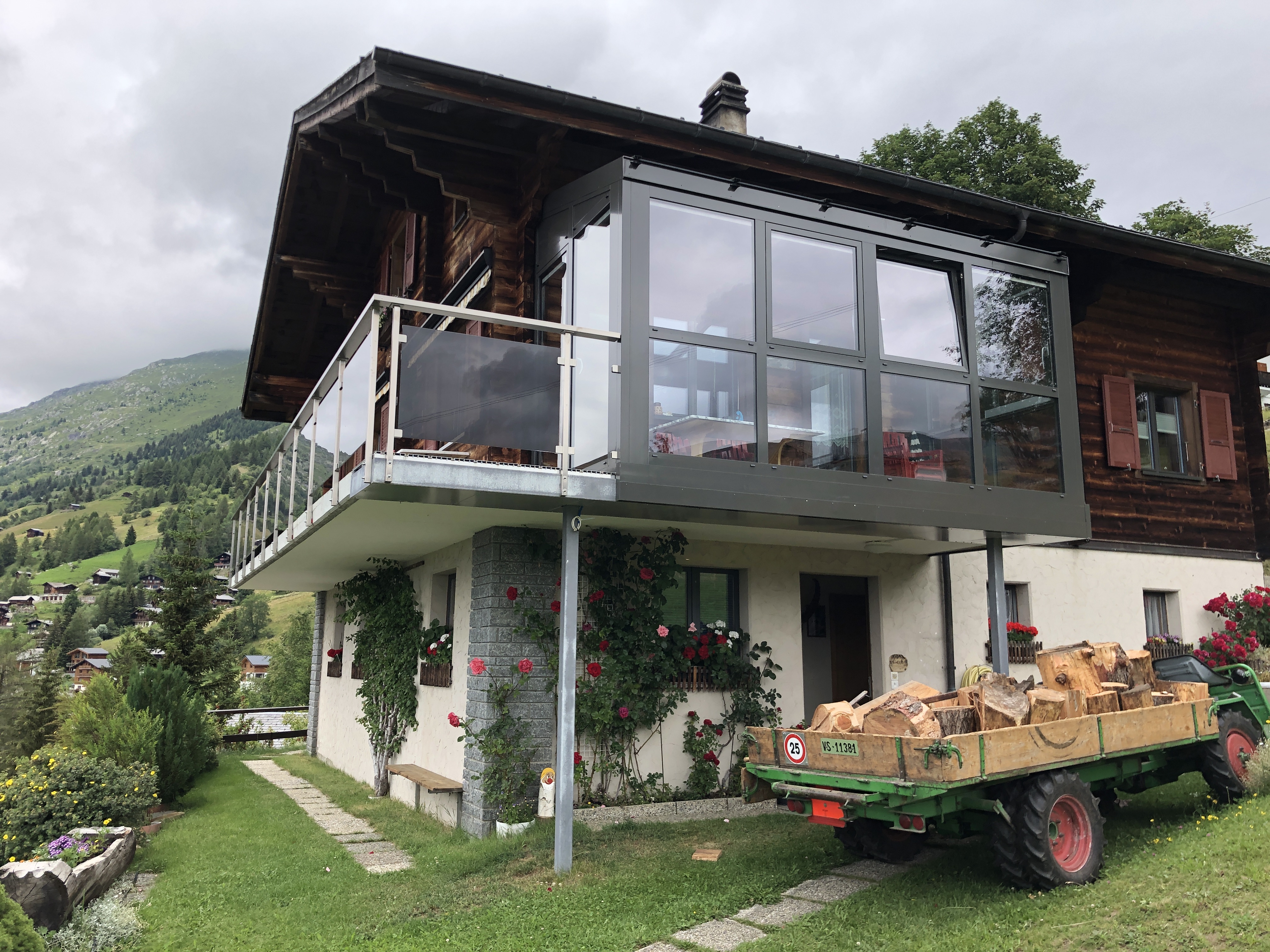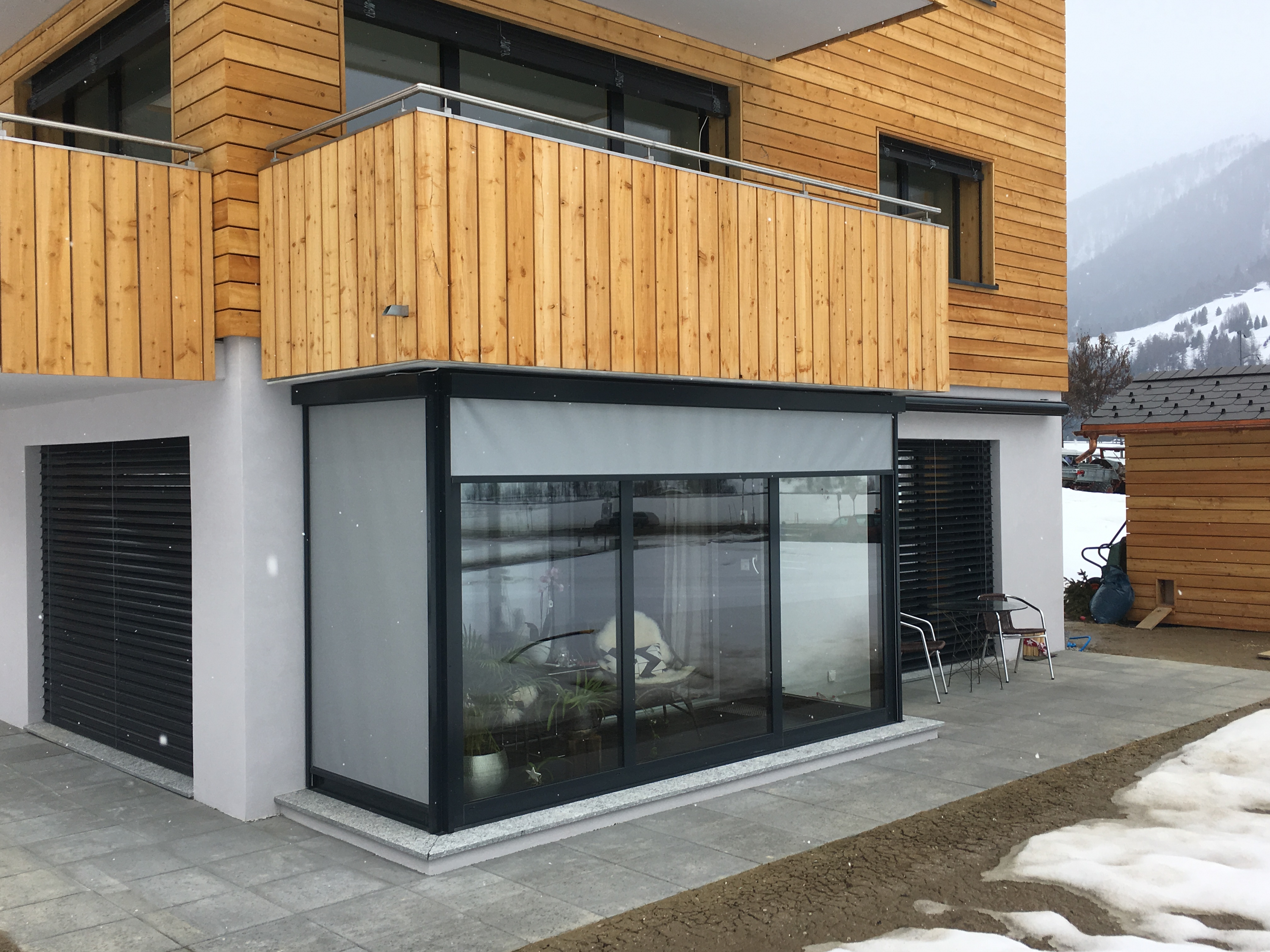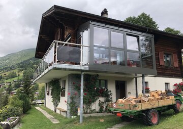Wintergarten, Fenster, Fassaden, Vordächer Ein Wintergarten empfiehlt sich für zusätzlichen Wohnraum oder für einen witterungsgeschützten Sitzplatz. Gerne machen wir Ihnen ein Angebot, um auch bei Ihnen einen Wintergarten oder eine Balkonverglasung zu montieren. Zudem produzieren und montieren wir Metallfenster in zahlreichen Formen und Farben. Diese zeichnen sich durch Robustheit, Langlebigkeit und Witterungsbeständigkeit aus. Gerne verschönern wir Ihren Eingangsbereich mit einem Vordach, welches den Eingang zudem vor der Witterung schützt. Auch Auto- und Velounterstände montieren wir problemlos an Ihre Fassade.