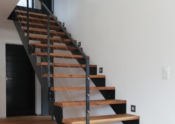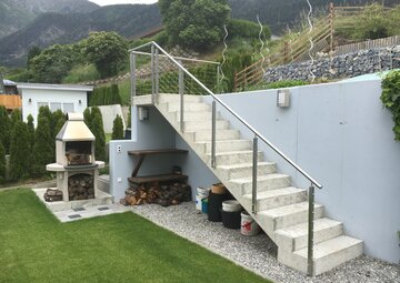 Geländer, Treppen Wir stellen für Sie Innen- und Aussengeländer in verschiedenen Varianten her. Neben den verschiedenen Materialien, welche für die Herstellung der Geländer verwendet werden, können auch die Füllungen variieren. Von Drahtseilen über Glas bis zu Blechelementen können die verschiedensten Füllungen in Ihr Geländer eingebaut werden. Zudem fertigen wir Zäune für Garten und Umgebung an. Wir fertigen ebenfalls Treppen für den Innen- und Aussenbereich an. Als Material für die Stufen können neben Stahlblech auch Naturstein, Holz oder Gitterroste zum Einsatz kommen.