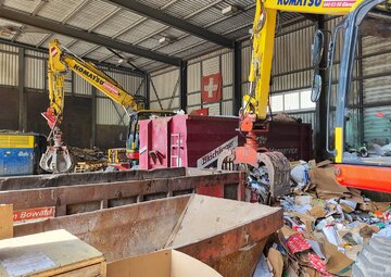 In unserer Sortieranlage werden die Mulden nach den verschiedenen Materialien sortiert und anschliessend in die entsprechende Deponie oder Annahmestelle gebracht. Bei der Entsorgung von diversen Chemikalien arbeiten wir mit dem Amt für Umweltschutz zusammen.