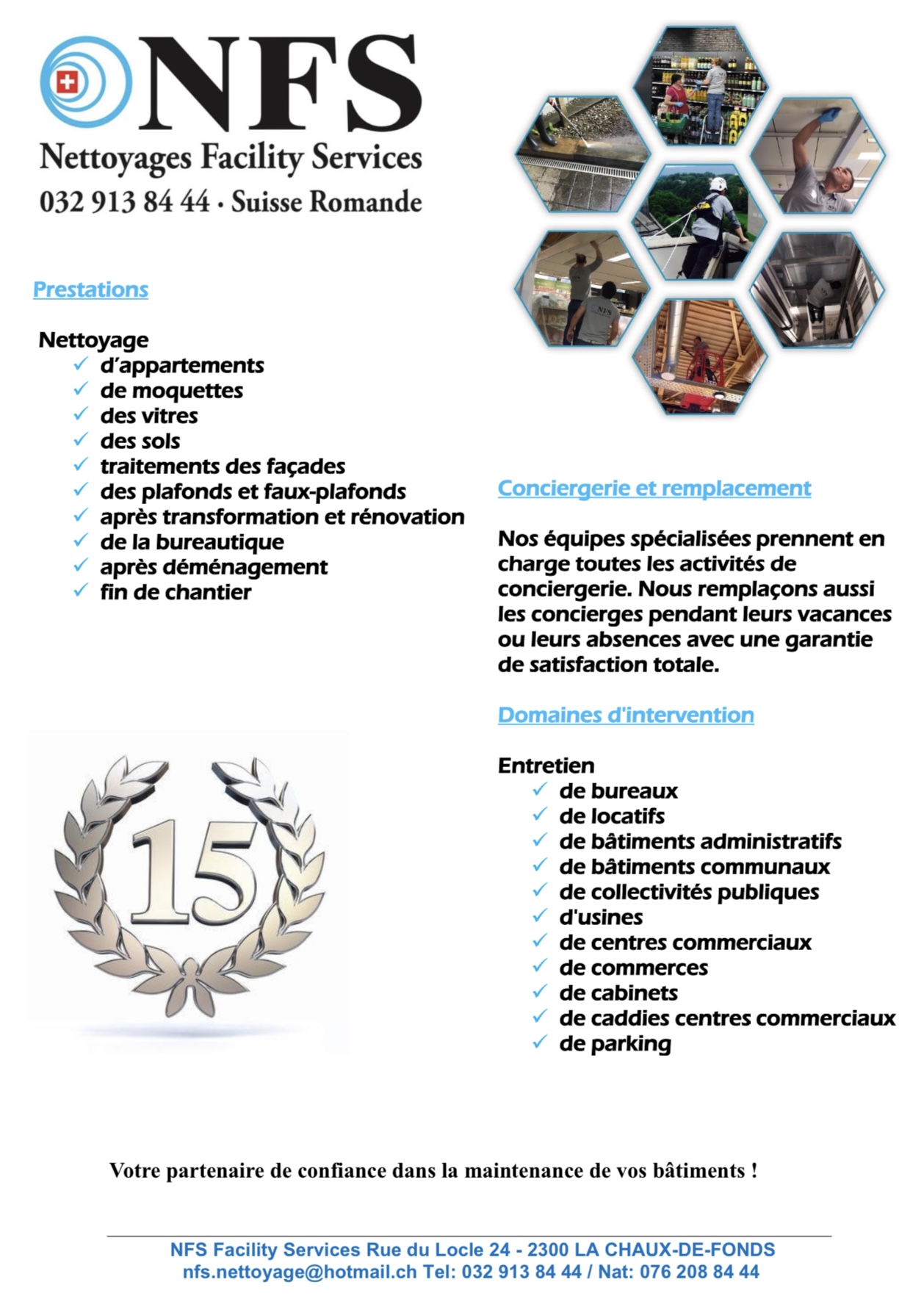 Entreprise de Nettoyages Facility Services pour toute la Suisse Romande.