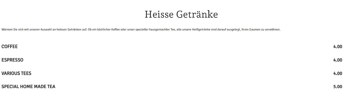 Wir legen Wert auf Frische und Qualität. Jedes Gericht, das wir servieren, wird mit den frischesten Zutaten zubereitet und garantiert ein unvergessliches Geschmackserlebnis.