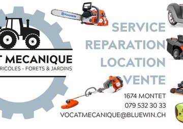 Depuis 2015, Vocat mécanique est le partenaire des professionnels des espaces verts et des clients particuliers pour les fournitures, les réparations des machines et du matériel nécessaire à leurs activités ainsi que des préparations d’expertises pour machines et remorques. En collaboration avec d’excellentes marques de fabricants de véhicules et de machines, nous vous conseillons pour la sélection du matériel le plus adapté à l'exercice de votre activité.L'entreprise dispose aussi de machines permettant l’affutage des lames de tondeuses, des lames de taille-haies, des chaînes de tronçonneuses et des couteaux de broyeur à bois.